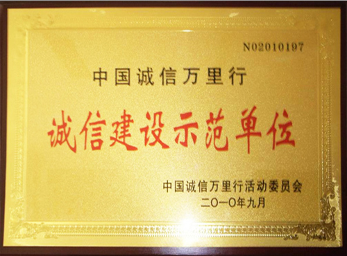 榮獲誠信建設(shè)示范單位榮譽(yù)證書